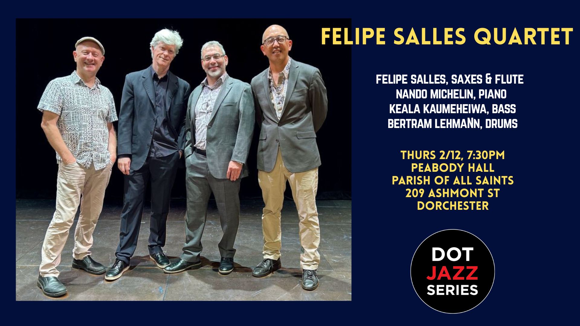 Coming up: the Felipe Salles Quartet at the Dot Jazz Series on Thursday 2/12!