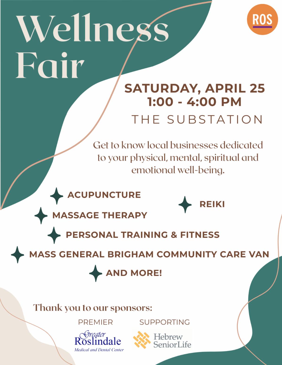 RVMS is hosting a Wellness Fair on Saturday, April 25 from 1-4pm at The Substation! Join us to meet local business owners who offer various wellness services, like acupuncture, reiki, message therapy, personal training, and more! The Mass General Brigham Community Care Van will be there offering flu and COVID vaccines, blood pressure screening, and more.